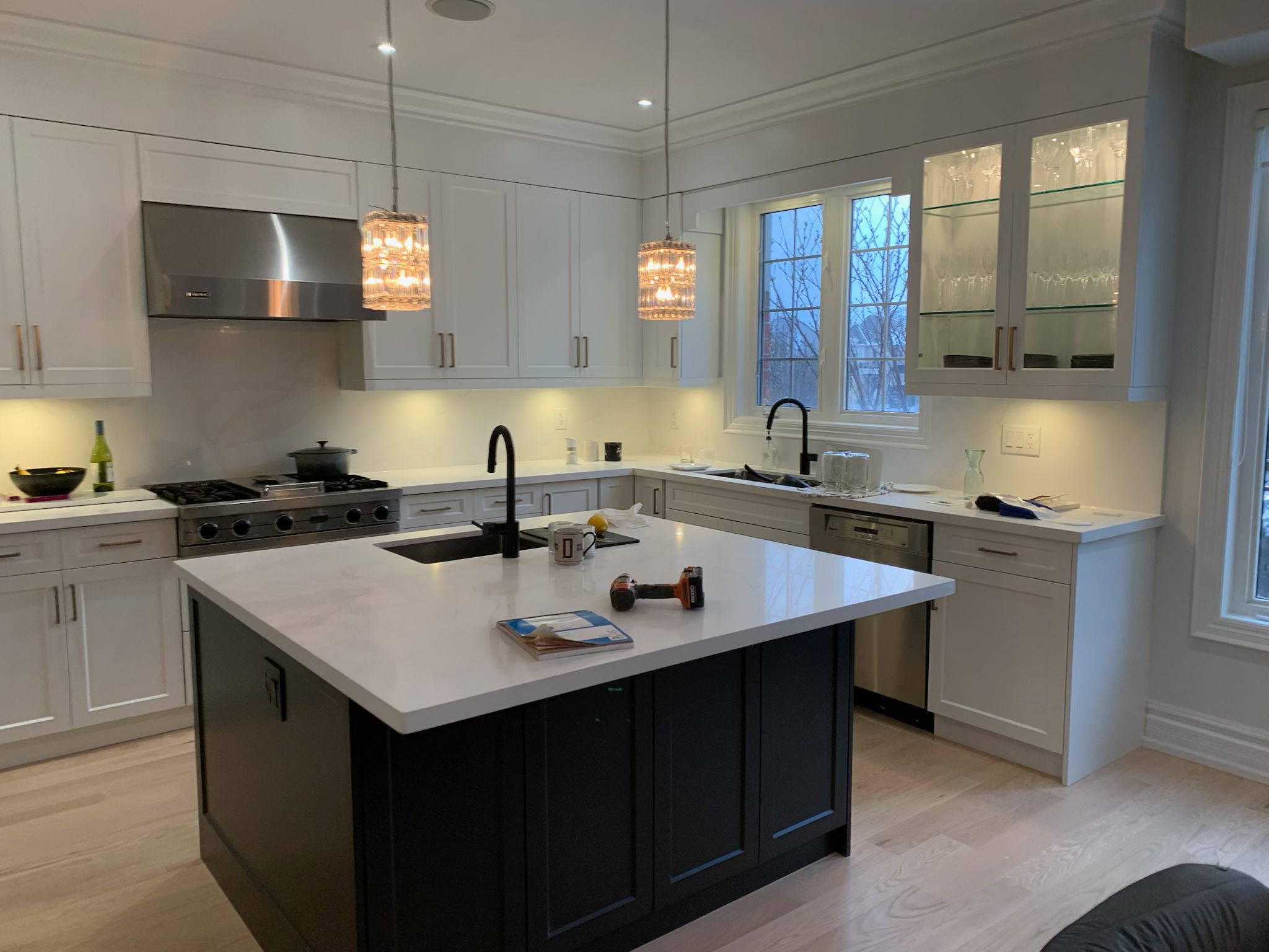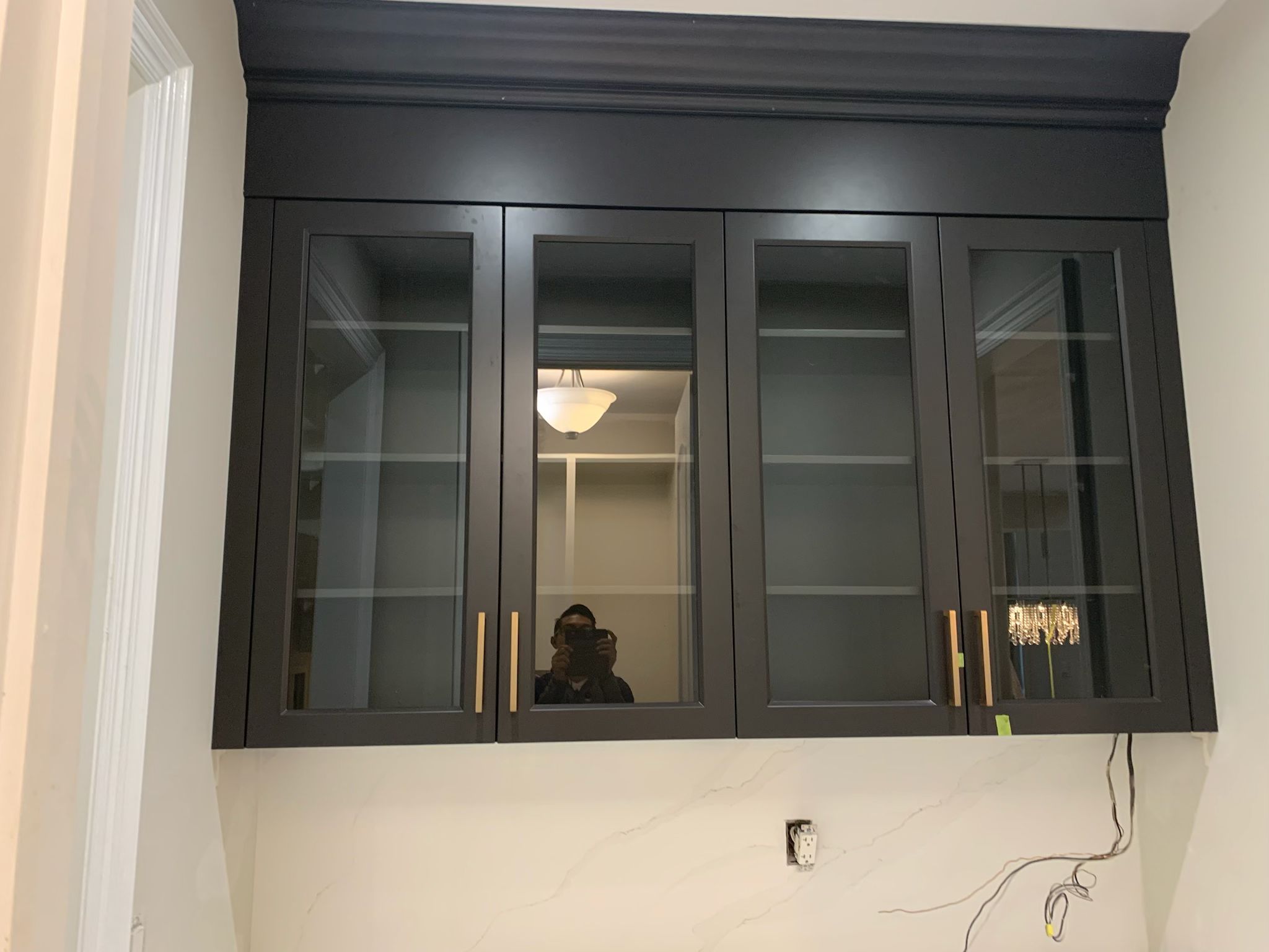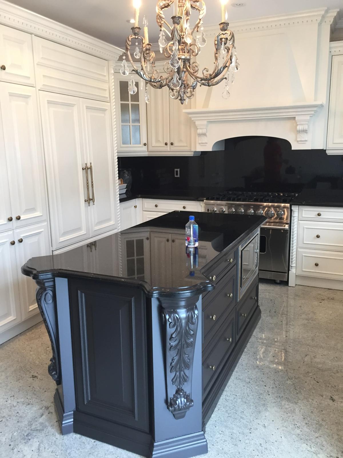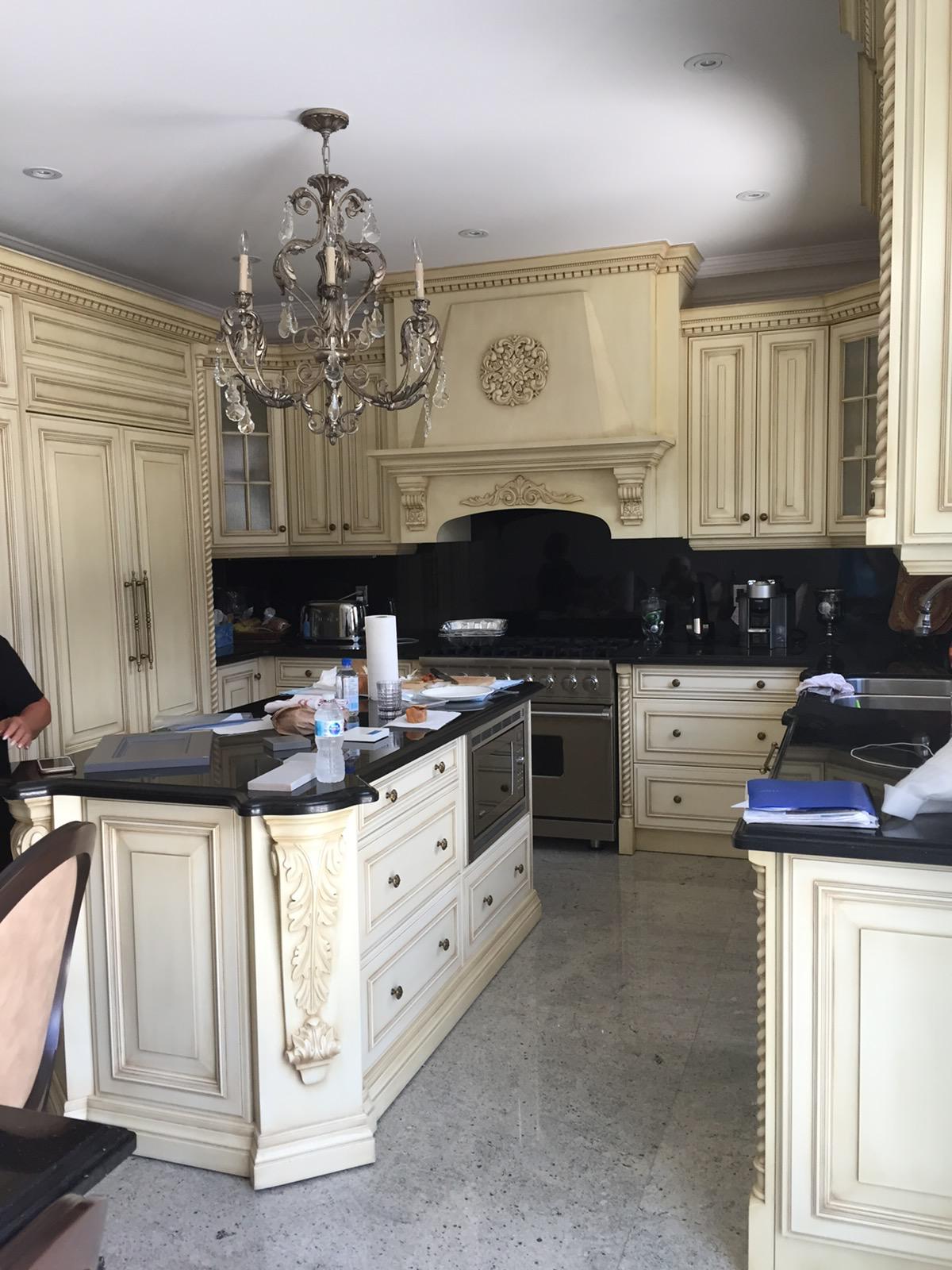 A high-end finish starts with expert preparation. Here, we’re installing custom side gables, elegant crown moulding, and a brand-new island to ensure every detail is perfectly aligned before the final transformation.