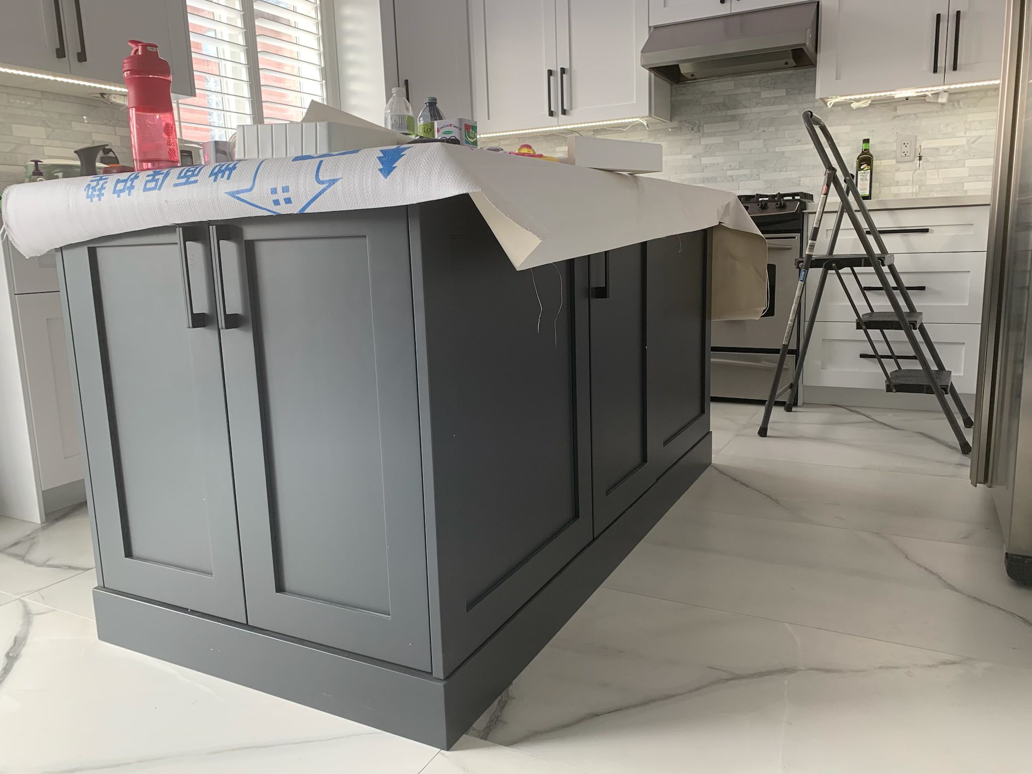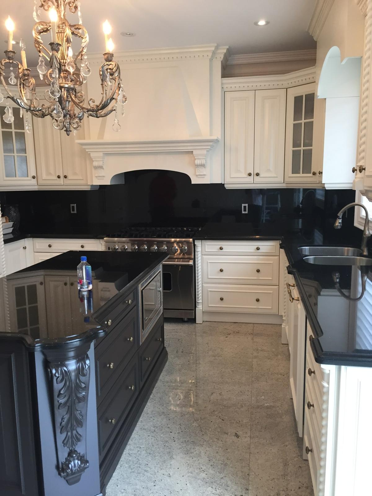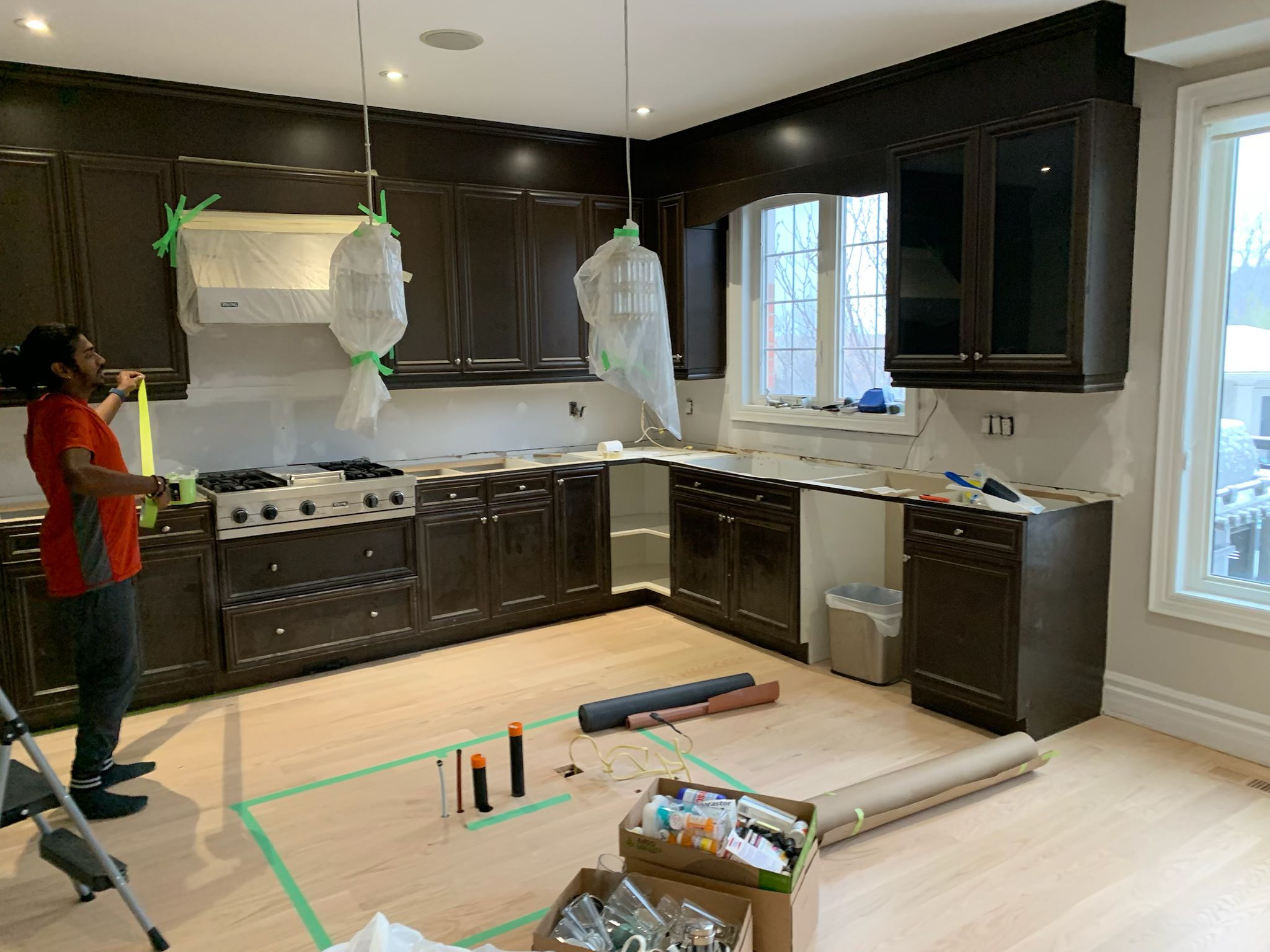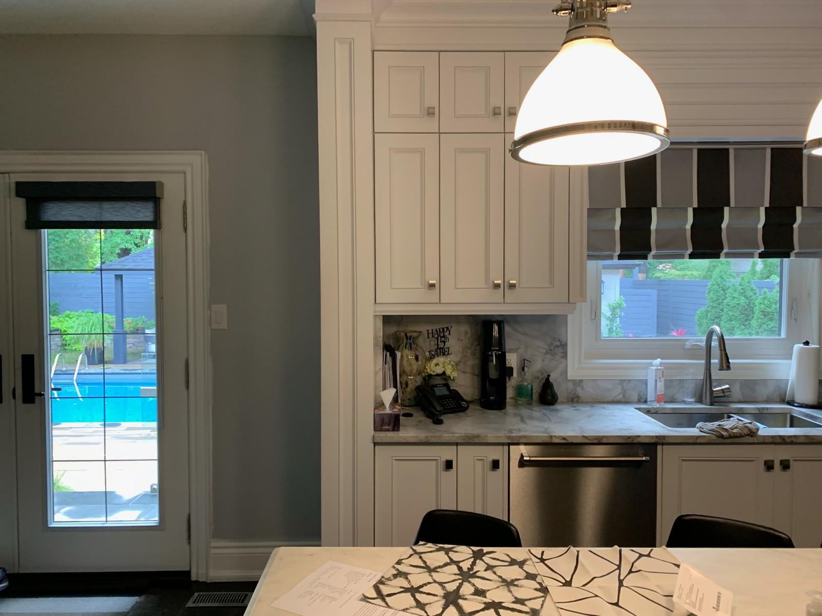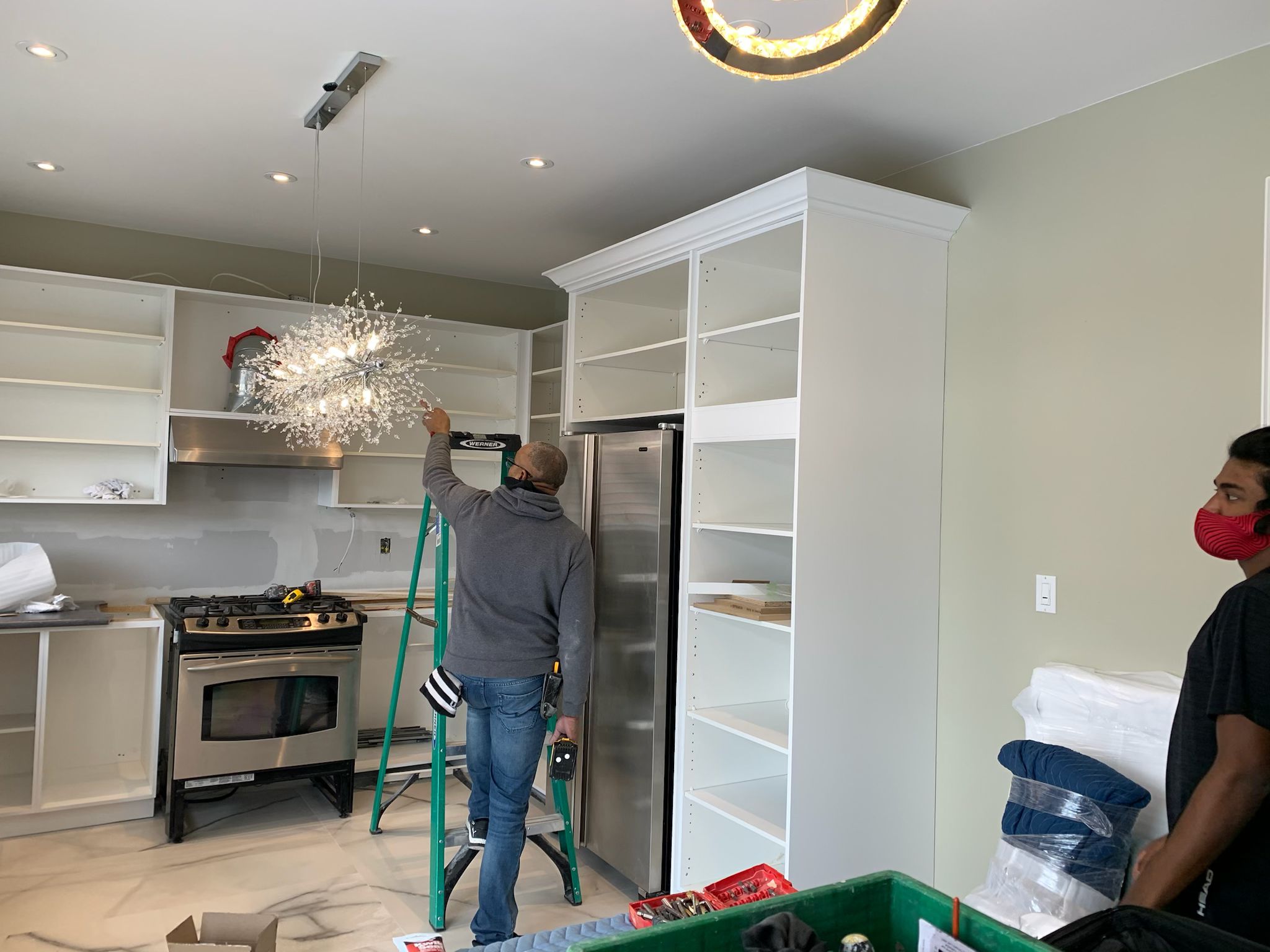 A high-end finish starts with expert preparation. Here, we’re installing custom side gables, elegant crown moulding, and a brand-new island to ensure every detail is perfectly aligned before the final transformation.