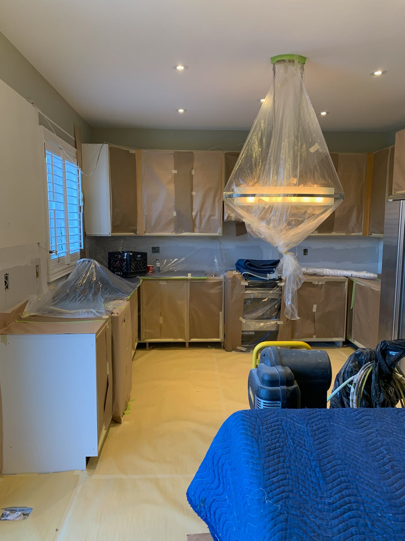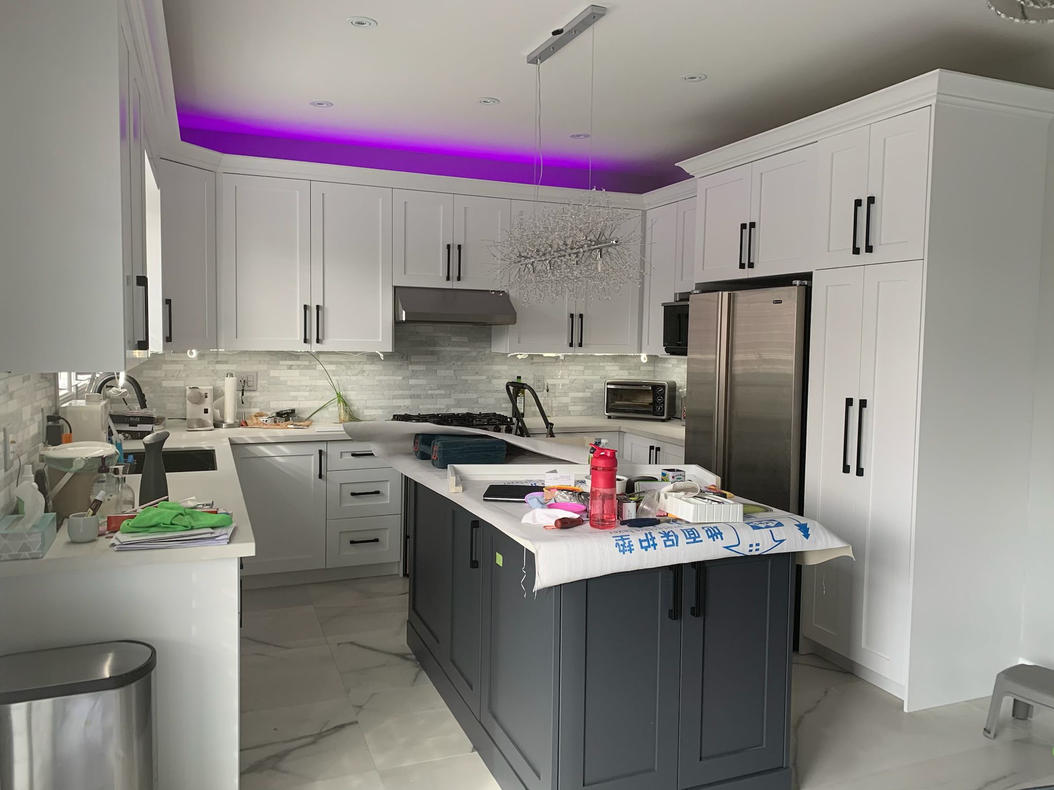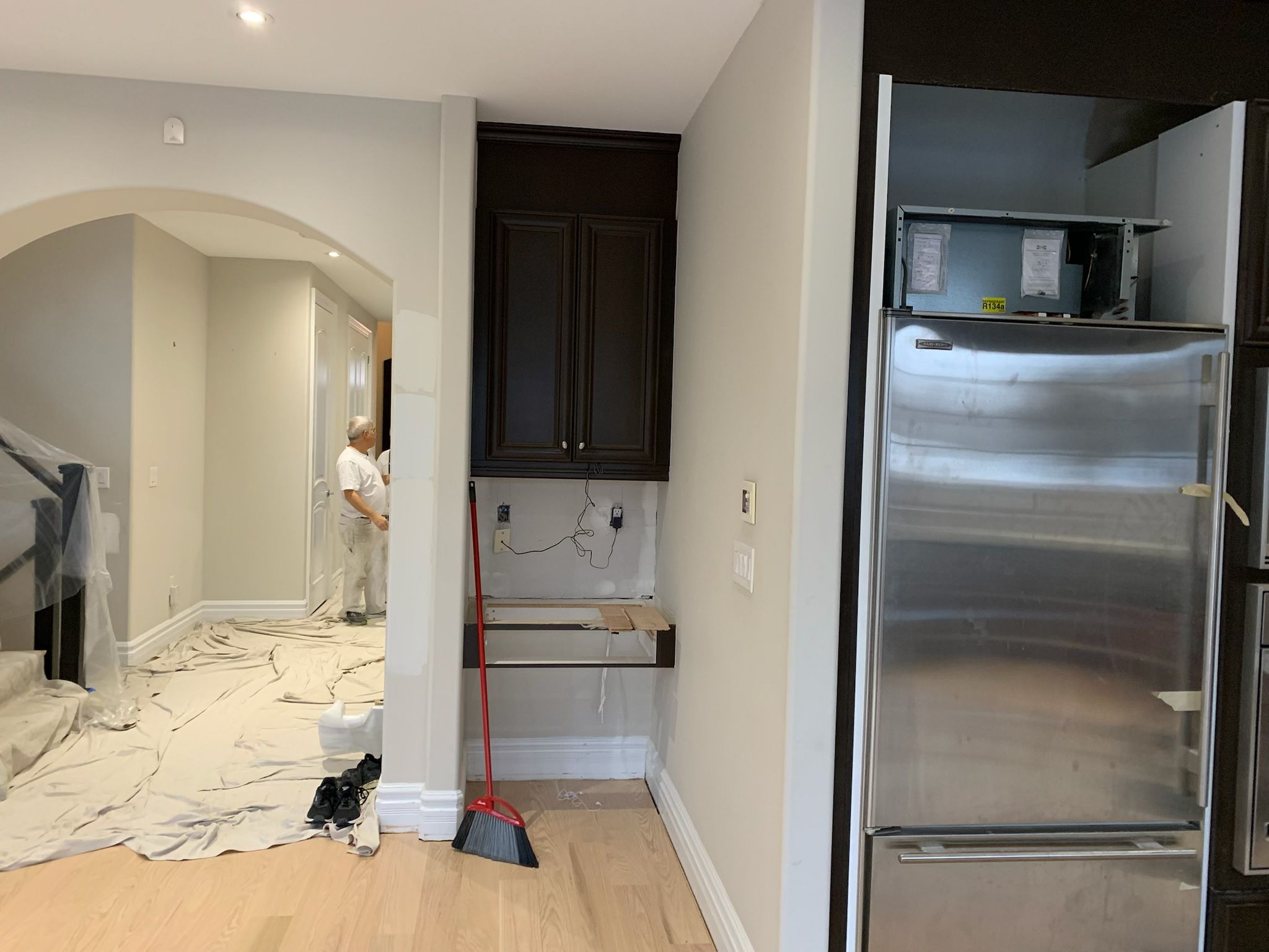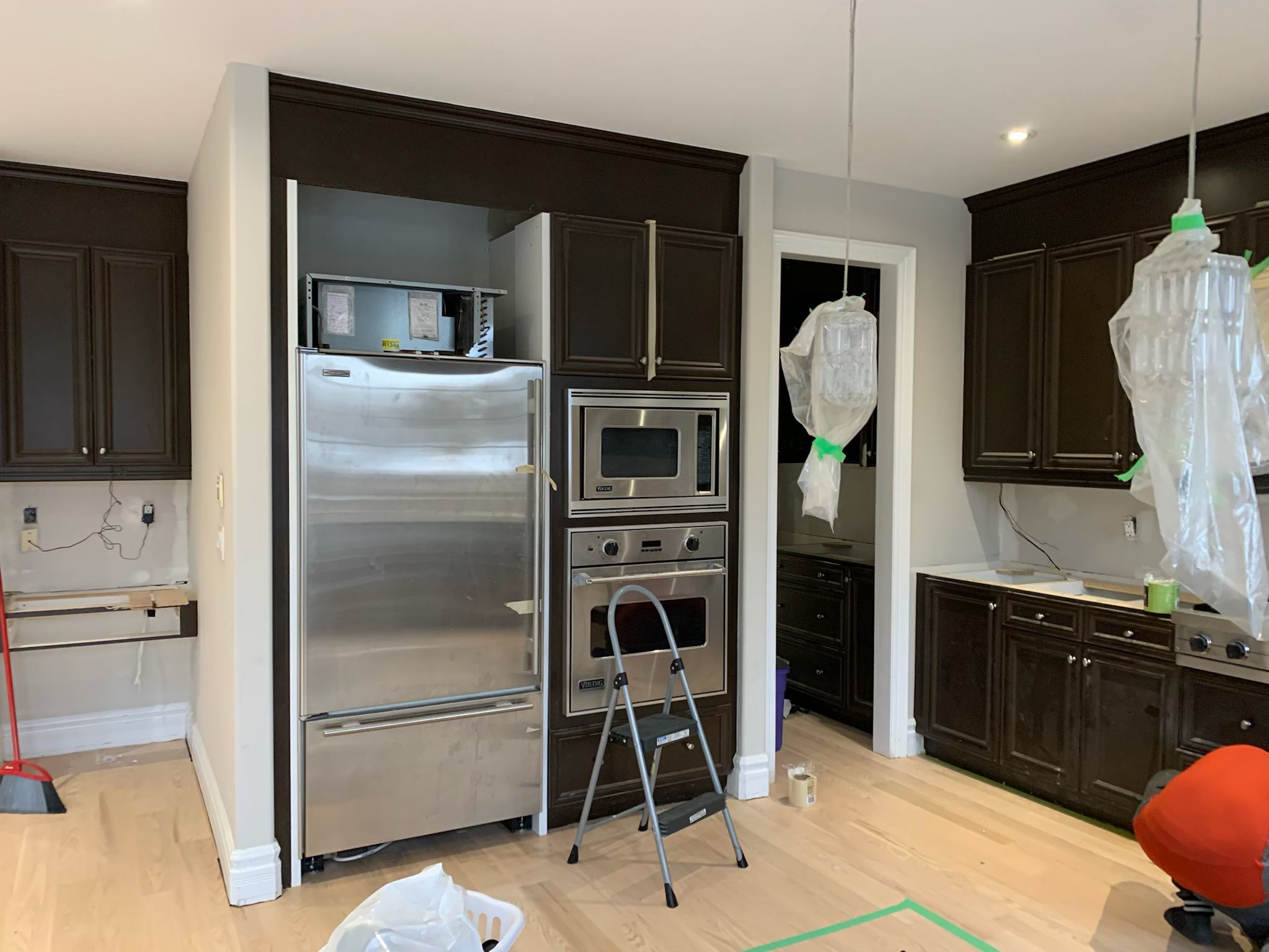 A high-end finish starts with expert preparation. Here, we’re installing custom side gables, elegant crown moulding, and a brand-new island to ensure every detail is perfectly aligned before the final transformation.